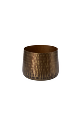Made from distinctive, lightweight metal with hammered, tick mark detailing across the surface, the stunning small metal Jardin Pot brings a timeless elegance to home decor. Featuring a simple silhouette, a warm antique gold finish, a circular base, & slight tapering from the bottom to the top, this watertight pot easily coordinates with any interior design style. Add florals or a 8-inch drop-in plant for a classic, elevated look.