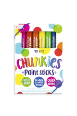 A starter set of Chunkies Paint Sticks in a travel-friendly pack of 6! These paint sticks are easy to hold and come in 6 classic and quick drying colors. You can twist up barrels for long-lasting, mess-free fun that kids and adults alike will love.