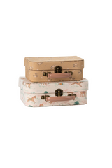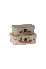 A perfect suitcase set to store all your favorite items. Each suitcase is covered by unique Maileg fabrics and has colored metal handles. This 2 pcs set is perfect both for storage and for carrying your favorite toys in.