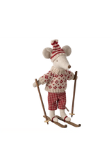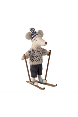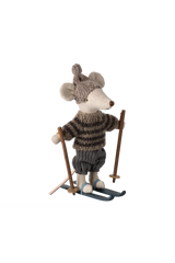 A mouse ready for hours of fun on the slopes during the cold wintertime. Each playset contains a warmly dressed mouse with a pair of ski and poles. Look at the tiny knitted hat that will keep the ears warm.