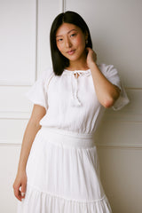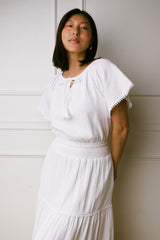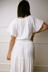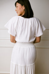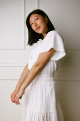 Get ready to add some sweetness to your wardrobe with the Brinley White Top! Made from 100% cotton, this top features flutter short sleeves with delicate white trim detailing that adds a touch of femininity. The tie at the neckline adds a charming touch while the elastic hemline keeps things fun. Perfect for a casual day out or a night on the town!