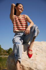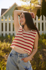 Cropped and impossibly cute, this Jennifer Red Striped Knit Tank adds a pop of personality to your wardrobe! The lightweight knit fabric keeps you cool while the horizontal stripes create a fun, eye-catching effect. Perfect for pairing with high-waisted bottoms for that carefree summer vibe!