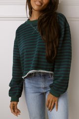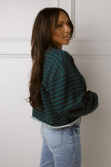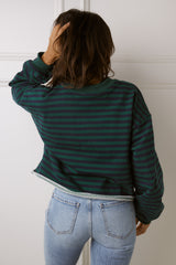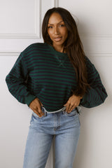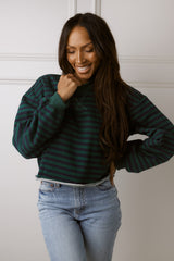 Show off your casual cool style with our Nicole Green & Navy Top! Featuring a flattering cropped fit, raw hemline, and long sleeves, this top is perfect for any occasion. The horizontal stripes add a touch of fun to your look.