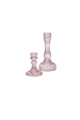 Add a vintage sensibility with on-trend color to your table centerpieces with the short Gillian Candlestick, designed classic with a twist. This pink glass candle holder offers visual impact & easy elegance to wedding & event design. It holds a standard taper candle & fits under a 4-inch glass sleeve. Pair with our colorful glassware, including the Momento & Pomona Drinkware collections, for a stunning, coordinated tablescape.