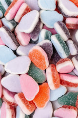 - Ingredients: Sugar, Glucose Syrup (from Wheat or Corn), Sorbitol, Gelatin, Contains less than 2% of: Citric Acid, Pectin, Trisodium Citrate, Artificial Flavors, Blue 1, colored with Spirulina Extract, colored with Fruit and Vegetable Juice