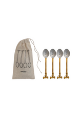 - Stainless Steel & Brass Coffee Spoons w/ Gold Finish Bow Handles