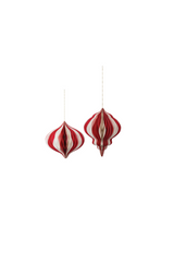 12-1/2"H Handmade Recycled Paper Folding Honeycomb Ornament w/ Gold Glitter Edge, Cream Color & Red, 2 Styles