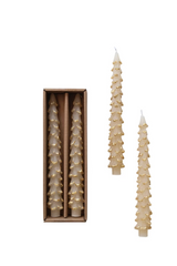 These Christmas Tree Taper Candles bring the festive spirit into your home, adding that extra touch of opulence to your candlestick holiday decor. The unique, tree-shaped design crafted from tapered candle wax creates a stunningly classic addition to any living space, perfect for completing an elegant holiday display.