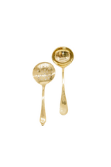 This set of brass serving utensils is an elegant addition to any kitchen. Crafted with durable brass, it's designed to last for years and has a beautiful shine that makes it perfect for special occasions.