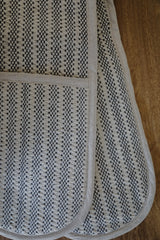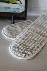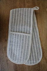 When moving a hot dish, make things easy by only having to grab one hot mitt/potholder. This long mitt has a pocket on each end for placing a hand in. If moving a large pot, allow the center of the hot mitt support the bottom while holding the sides with the mitt portions. It is also perfect for placing on the table for an extra long dish to sit on.