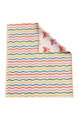 Reversible Design: • First Image: Side A • Second Image: Side B Product Details: • Fabric: 80% rPET (recycled polyethylene terephthalate) and 20% polyamide. • Dimensions: 20” wide x 28” long. • Features: Waffle weave texture, highly absorbent, quick-drying, and incredibly soft. • Care: Machine washable