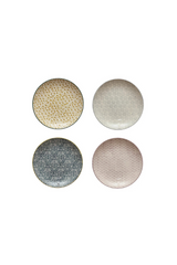 - 10" Round Hand-Stamped Stoneware Plate w/ Pattern, Multi Color, 4 Styles
