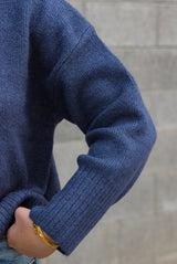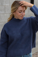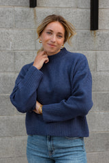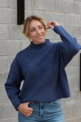 The Gianna Navy Sweater offers a modern, slightly cropped silhouette with a relaxed boxy fit, perfect for effortless layering. Crafted with ribbed detailing on the neck, sleeve cuffs, and hemline, it provides a polished finish while ensuring comfortable wear. Its versatile neutral navy shade makes it an essential addition to your wardrobe, effortlessly pairing with your favorite pieces for both casual and refined looks.