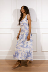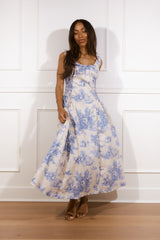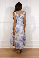Get ready to turn heads in the Aviana Toile Midi Dress! This playful tank style dress features a charming round neckline with tie detail and a structured waistline for a flattering silhouette. With a unique and romantic toile print, this dress is sure to make a statement.