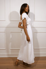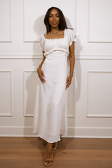 The Evie Smocked Ivory Dress features a charming square neckline, a flattering smocked empire bodice, and playful ruffle detailing. Perfect for any occasion, this dress will have you feeling both stylish and comfortable.