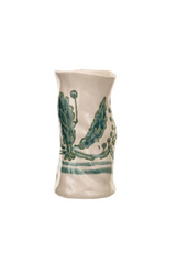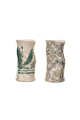 - Hand-Painted Stoneware Organic Shaped Vase w/ Wax Relief Pattern
