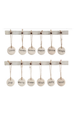 Hang some festive flair with our Holiday Word Tags. Made of sturdy stone, these cute tag ornaments feature jolly words to ring in the season. Show off your holiday spirit with a merry tree full of these special tags!