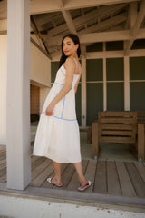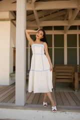 Kenzie White Dress with Sky Blue Binding FINAL SALE