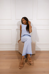 Get ready for spring with the Rylie Baby Blue Skirt! Effortlessly stylish with a slimmer fit, this knit skirt features an elastic waist for a comfortable and customizable fit. Mix and match to create endless spring ensembles.