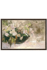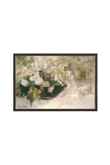 A stylish and timeless piece, our Still Life with Peonies c. 1889 Framed Print features a sumptuous floral scene in intense colors, complemented by shimmering gold tones and a unique textured background created by the artist's rough brushstrokes. The perfect addition to any room.